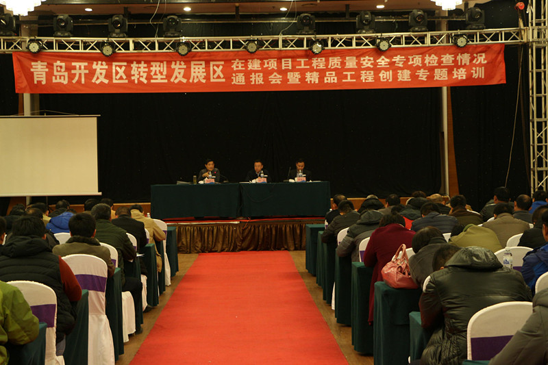 12月6日下午,开发区工委委员、管委副主任高嵘同志主持召开开发区转型发展区质量安全专项检查情况通报会暨精品工程创建专题培训。开发区质监站,开发区转型发展区在建项目各建设、施工、监理企业代表240余人参加会议。